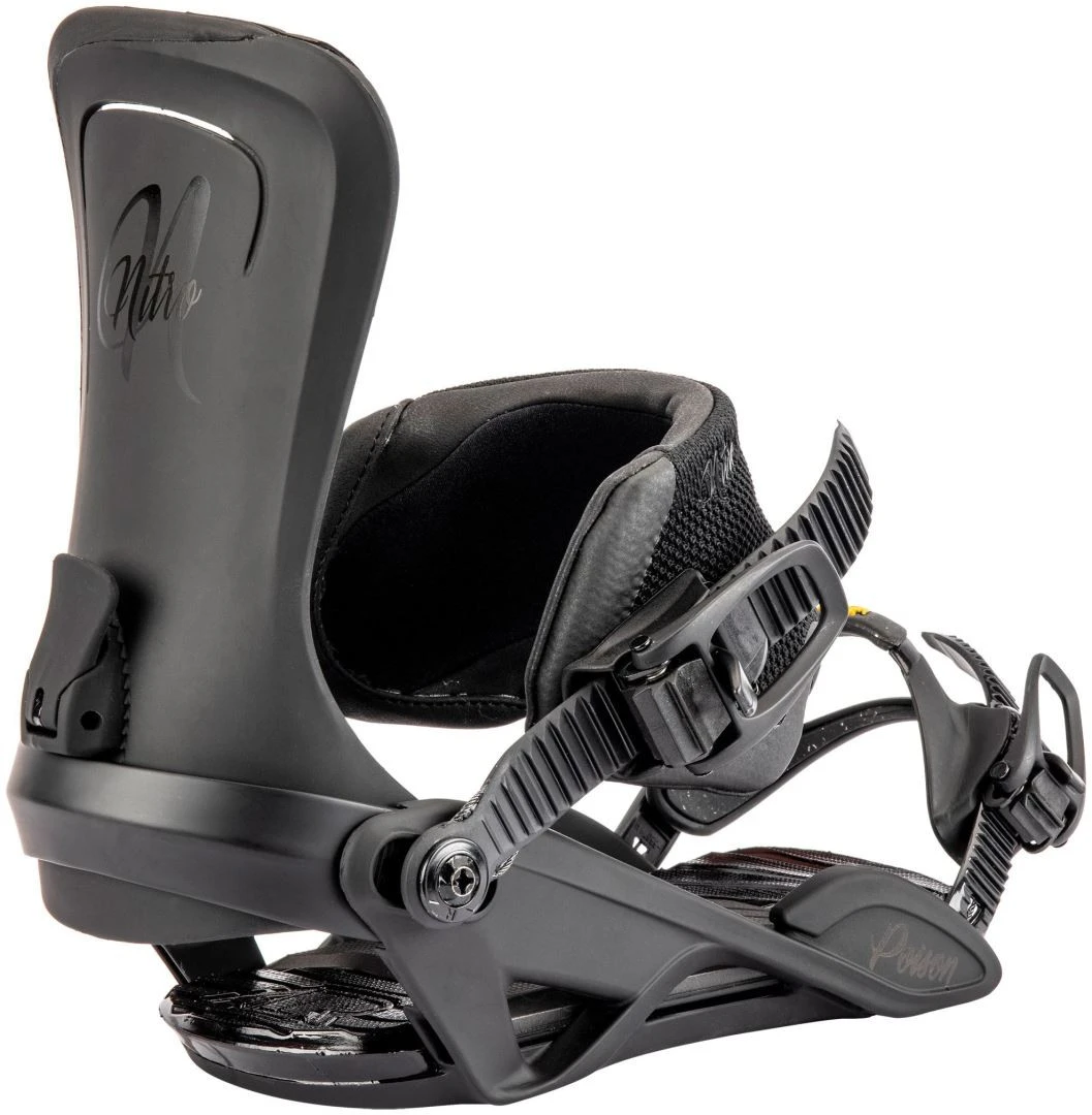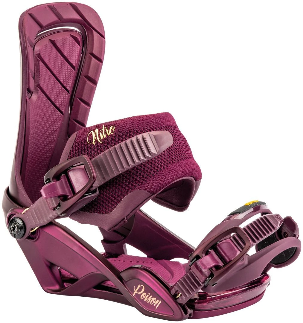 De lichtgewicht Poison snowboardbinding voor dames biedt een professionele all-mountain mix van respons en houvast met zijn lichtgewicht Stealth AIR Women ’s basisframe en Catalyst Highback. Bovendien zullen uw voeten en knieën een nieuw niveau van comfort ervaren met de Dual AIR Demping en 3° Canted-voetbedden. Tegelijkertijd zorgen de gesmede aluminium snelheidsgespen en kabelversterkte connectoren en ratels ervoor dat u het hele seizoen met vertrouwen kunt opladen. Tot slot biedt de Nitro-exclusieve Übergrip Toe Strap met Vibram© EcoStep™ rubber en Premium Hold Ankle Straps de meest nauwkeurige houvast op de markt, waardoor u de best passende binding krijgt die uw laarzen kunnen vinden!