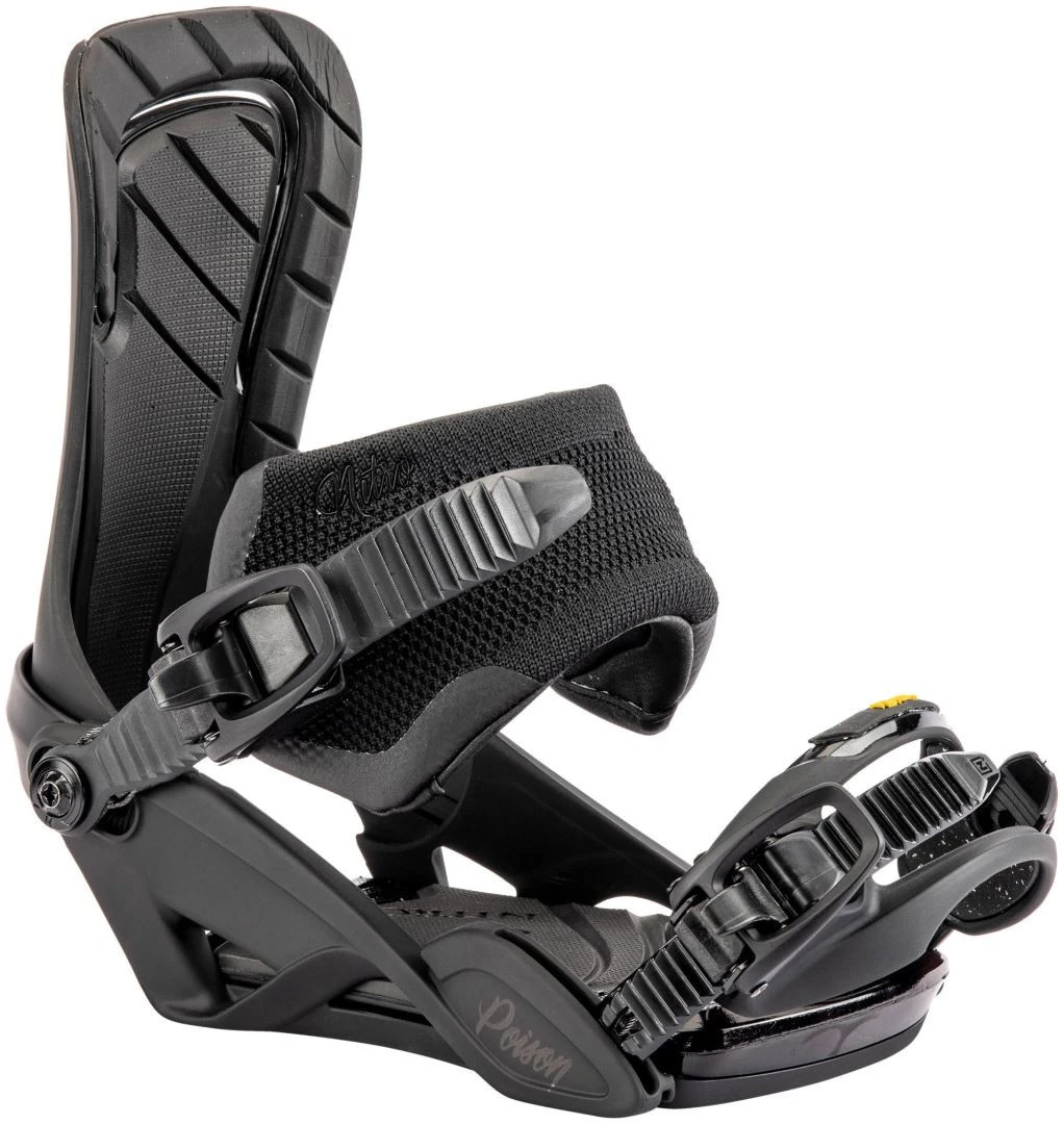 The women’s lightweight Poison snowboard binding provides a professional all-mountain blend of response and foothold with its lightweight Stealth AIR Women’s base frame and Catalyst Highback.